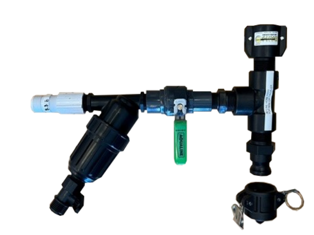 The Inline Monsoon Tee easily connects with Aquaglide Monsoon system at any Spray Hose Junction. Provides a large, EZ clean filter, and lever-actuated ball valve for convenient branch shutoff or adjustment. Steps down from 1.0” Monsoon hose to standard garden hose size (3/4” (NH14TPI) to supply water for potentially several Mini Monsoon cones and/or Tricklers. *Note: Monsoon System, Mini Monsoon & Tricklers and hose splitter sold separately.